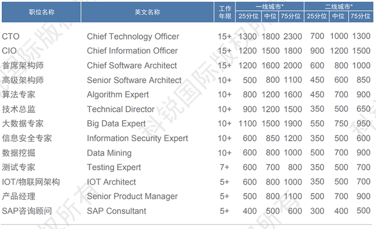 数据来源:美狮贵宾会国际资深行业专家对2021年热门职位薪酬范围及跳槽涨幅的预测。薪酬为基本年薪。